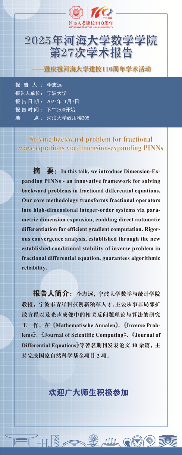 博彩网 第27次学术报告:Solving backward problem for fractional wave equations via dimension-expanding PINNs