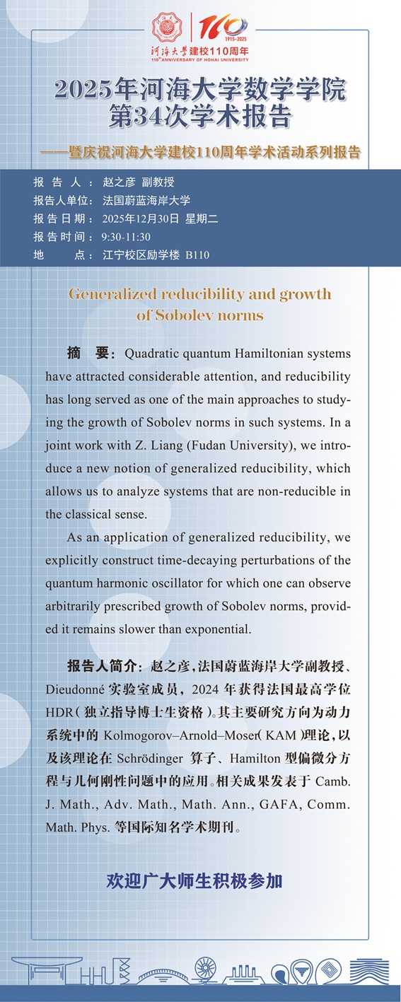 博彩网 第34次学术报告:Generalized reducibility and growth of Sobolev norms