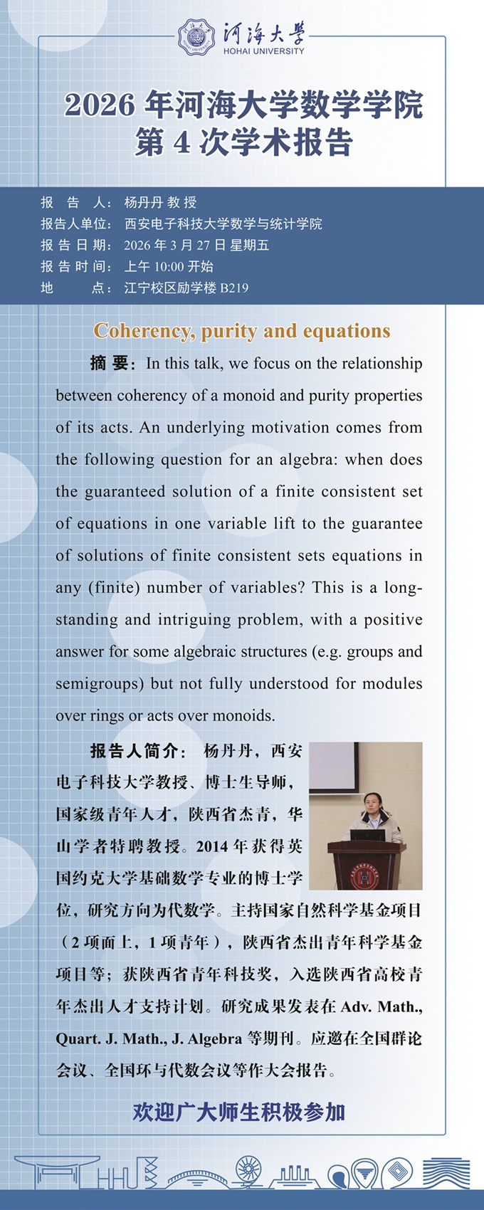博彩网 2026年第4次学术报告:Coherency, purity and equations